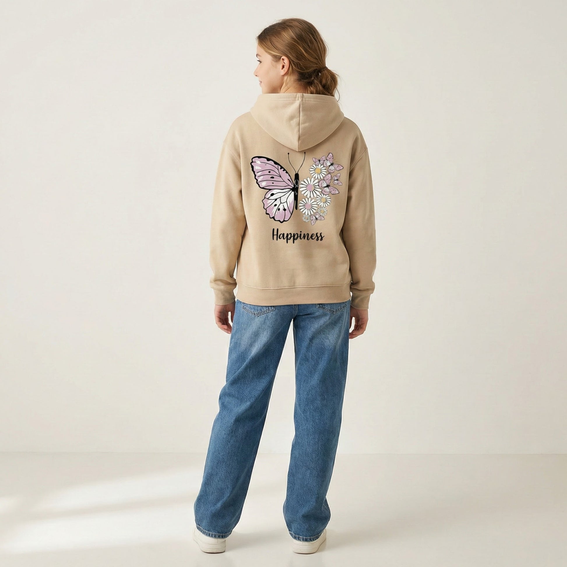 Girls "Happiness" Floral Butterfly Hoodie